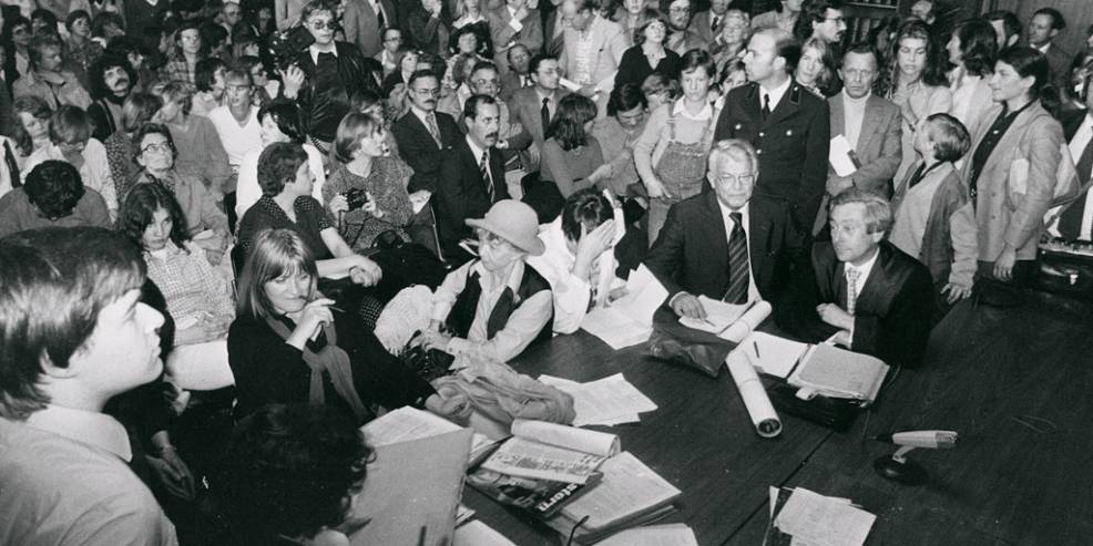 Meine Klage zusammen mit neun weiteren Frauen – darunter Inge Meysel, Erika Pluhar und Margarethe von Trotta – wurde angenommen und der Prozess für den 14. Juli anberaumt. Bis er losgehen konnte, vergingen einige Stunden, denn das Gericht musste innerhalb des Gebäudes mehrfach umziehen. Letztendlich war auch der große Plenarsaal des Hamburger Oberlandesgerichtes zu klein. Die Medien drängten und stapelten sich, und die deutschen JournalistInnen mussten sich den knappen Platz mit den internationalen Medien teilen. „So groß war damals das öffentliche Interesse“, schrieb der damalige Feuilleton-Chef des Spiegel, Hellmuth Karasek, in seinem Kommentar. Der allerdings erschien nie in seinem eigenen Blatt – Spiegel-Chef Augstein kegelte ihn persönlich raus (und EMMA veröffentlichte ihn schließlich).