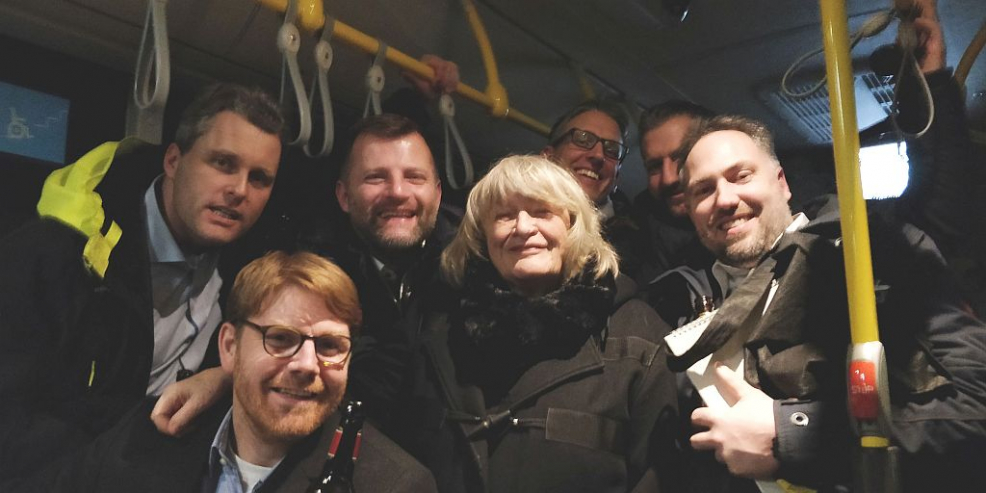 "Also, bevor du jetzt aussteigst, machen wir aber noch ein Selfie zusammen, Alice!" Klar. Gesagt, getan. So schön kann Busfahren in Köln sein! Zumindest im 106er. In den bin ich am Heumarkt gestiegen, auf dem Weg ins Kino ("Roma" - sehr empfehlenswert). Erst fehlten mir 10 Cent für die Fahrkarte. Kein Problem. Die Jungs zückten alle ihr Portemonnaie. Dann fuhr der Bus erst eine Viertelstunde später ab. Wie schön. Gelegenheit, schnell noch ein Fläschchen Kölsch zu holen. Schließlich kamen die Herren aus der Südstadt gerade von einer "Herrensitzung" im Gürzenich, was heißt: neun Stunden schunkeln, von zehn bis 19 Uhr. Und dann brav nach Hause fahren zu Frau und Kind (nur einer von denen ist noch zu haben). Das Foto haben sie mir mit dem Kommentar gemailt: "Liebe Alice, hier sind deine neuen Jungs." Recht so. Mit euch lässt sich leben. Und feiern!
