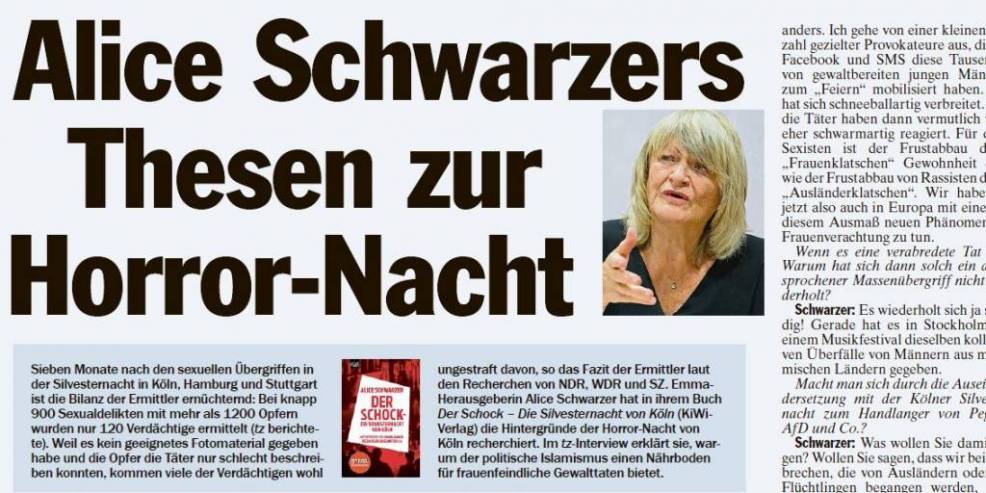 Diese frustrierten, entwurzelten jungen Männer drangsalieren nicht nur ihre eigenen Frauen - mehr denn je! -, sondern ziehen nun bis nach Europa und überfallen auch hier die „zu freien“ Frauen. Dass das im 21. Jahrhundert so ist (Köln war nicht der einzige und nicht der letzte Fall dieser Art), das hat mit der Offensive des politisierten Islam zu tun. Er liefert das ideologische Gerüst: den verschärften Männlichkeitswahn, Frauenverachtung inklusive. Dieser Islamismus ist der Funken, der jetzt die Flammen des schon lange glimmenden Feuers hochschlagen lässt.