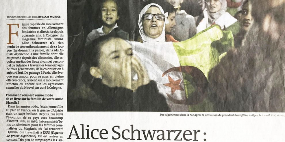 Figure capitale du mouvement des femmes en Allemagne, fondatrice et directrice depuis quarante ans, à Cologne, du magazine féministe EMMA, Alice Schwarzer n’a rien perdu de son enthousiasme ni de sa fougue. En donnant la parole, dans "Ma famille algérienne", à une famille dont elle est proche depuis des décennies, elle esquisse un état des lieux vivant et personnel de l’Algérie à travers les témoignages de trois générations, de la colonisation à aujourd’hui. De passage à Paris, elle évoque son amour pour ce pays en pleine effervescence, revient sur le mouvement #metoo ou encore sur les agressions sexuelles du Nouvel An 2016 à Cologne.