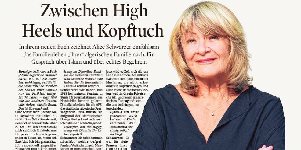Alice Schwarzer (lacht): Na, da schwingt natürlich eine Portion Selbstironie mit, wenn ich so was erzähle. Aber in der Tat: Ich interessiere mich natürlich für Mode, und ich passe mich auch gerne anderen Sitten an, wenn ich Gast bin. Ich bin grundsätzlich respektvoll gegenüber Menschen und stülpe ihnen nicht meine Sicht der Dinge und meine Sitten über. Und so eine algerische Hochzeit ist eben prächtig. Klar ist auch, dass selbst in meiner relativ fortschrittlichen Familie die Männer zuerst bedient werden. Das war bei uns ja vor 40 Jahren auch noch so. Vor der Frauenbewegung.