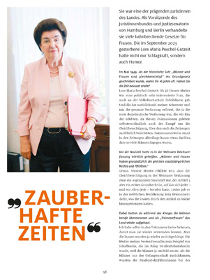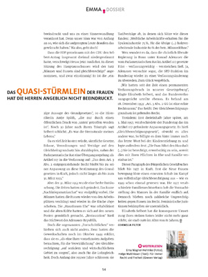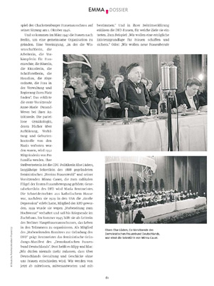 1977 veröffentlicht Margarete in der ersten Ausgabe von EMMA ihr spektakuläres Bekenntnis: „Ich bin Feministin.“ Na, da war was los! Jetzt auch noch die! Margarete Mitscherlich ist weltweit die erste Analytikerin von Rang, die sich offen zum Feminismus bekennt (Was in Deutschland bis heute für eine Wissenschaftlerin quasi undenkbar ist – aber zum Beispiel in Amerika längst selbstverständlich). Die Provokation war Margarete durchaus bewusst. Mehr noch: Sie war beabsichtigt. Für sie war es, wie sie einmal gesagt hat, ein „richtiger Befreiungsschlag“.