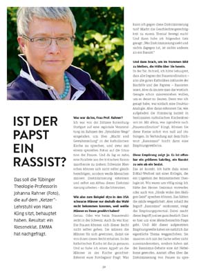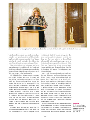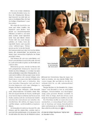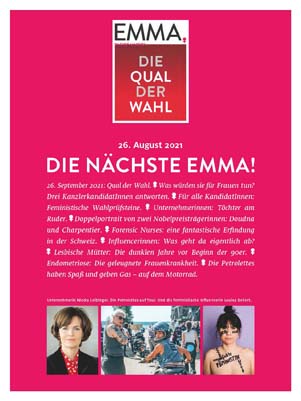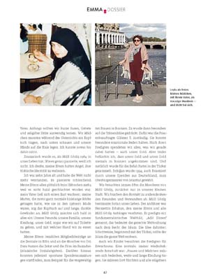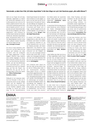 Rufschädigung? Klar. Zu viele haben in meinem Fall ein Interesse daran. Ein politisches Interesse. Und ich frage mich, ob es ein Zufall ist, dass manche bei ihrer Berichterstattung über mich gerade jetzt auf Recht und Gesetz pfeifen? Jetzt mitten in der von EMMA angezettelten Kampagne gegen Prostitution, wo es um Milliarden-Profite geht. Bei der Jahrzehnte währenden Kritik von EMMA am Ehegattensplitting, mit dem Vater Staat die Hausfrauenehe mit Milliarden subventioniert. Oder auch nach so scharfen öffentlichen Kontroversen, wie im Fall Kachelmann.