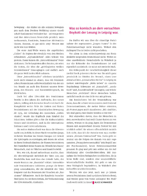 Lesen Sie doch mal eine andere Emigrantin: die Historikerin Gerda Lerner. Die beweist in ihrer Forschung über den «Beginn des Patriarchats» 5000 Jahre Entrechtung und Versklavung der Frauen. Das Patriarchat ist immer noch nicht zusammengebrochen, weil es sich nicht nur auf die Gewehrläufe stützt, sondern ebenso auf die Liebe. Die Frauen sind die Einzigen, die mit ihren Unterdrückern Tisch und Bett teilen. Völker leben in verschiedenen Ländern, Klassen in verschiedenen Stadtvierteln, Rassen in verschiedenen Terrains. Im Fall der Geschlechter ist das komplexer.