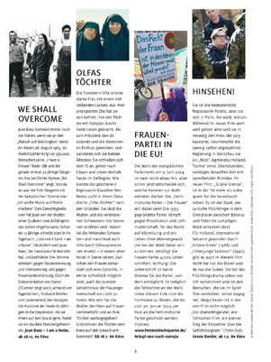 Aargh! Das sind ja Abgründe! Aber ich will nachsichtig sein, liebe Kollegen: Sie kommen wirklich von weit her. Aber so was ist ja die reine Sklavenmentalität: Mein Herr wird es schon richten... Nein, wir wollen, dass jeder Mensch eine eigene Stimme, gleiche Rechte und gleiche Chancen hat. Der Traum der Zukunft ist für mich eben weder «weiblich» noch «männlich», sondern schlicht menschlich.