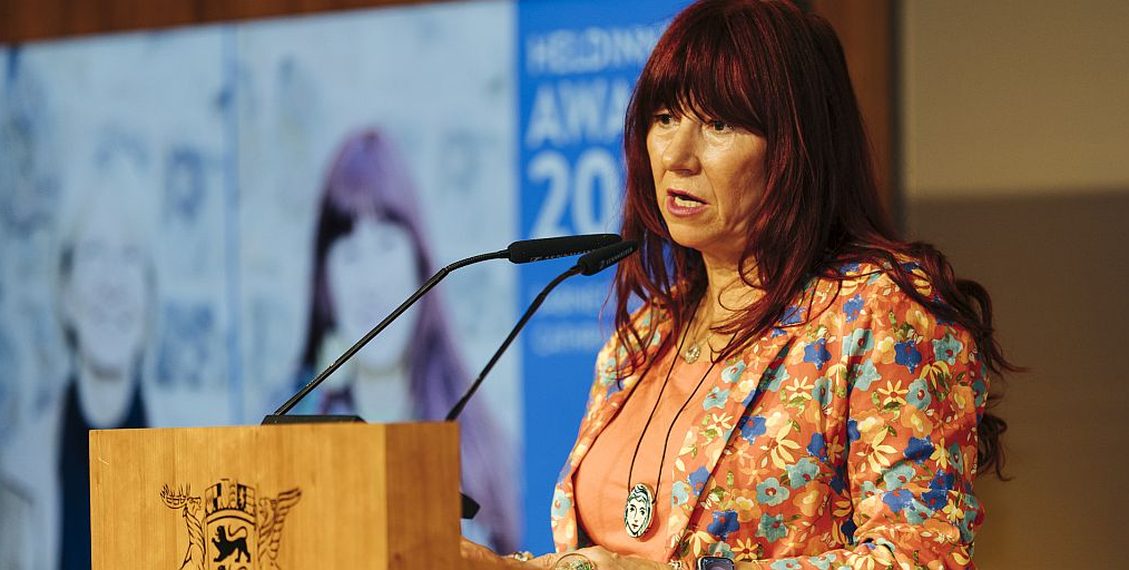 Julia Klöckner gibt das Wort an Preisträgerin Sabine Constabel von Sisters e.V..
