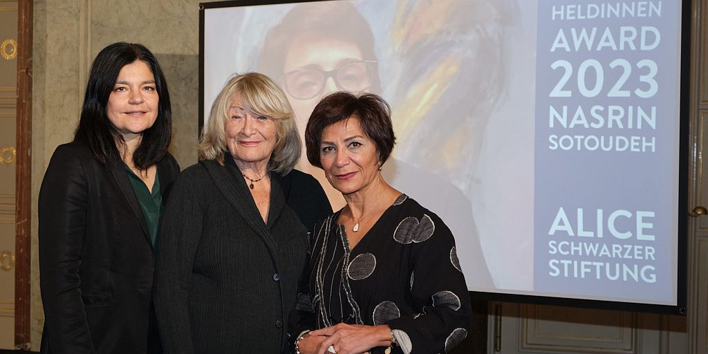 Hier die Aufzeichnung der Preisverleihung an Nasrin Sotoudeh am 13. November 2023 im Roten Rathaus in Berlin. Der HeldinnenAward der Alice-Schwarzer-Stiftung wurde zum ersten Mal verliehen. Alles über den Preis